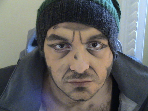 Hm…Nu! Adica teoretic toti avem toate datele in noi. Nu sunt betiv, nu sunt violent, nu sunt criminal, dar Bio este o parte din mine. O parte descoperita si folosita in scop artistic in acest spectacol. La un moment-dat am realizat ca Bio este tot ceea ce urasc la un om, tot ceea ce e gresit. Mi-a fost foarte greu sa-l iubesc pentru a putea merge mai departe cu lucrul. Am invins multe preconceptii si blocaje si cred ca asta ma ajuta si in viata de zi cu zi.