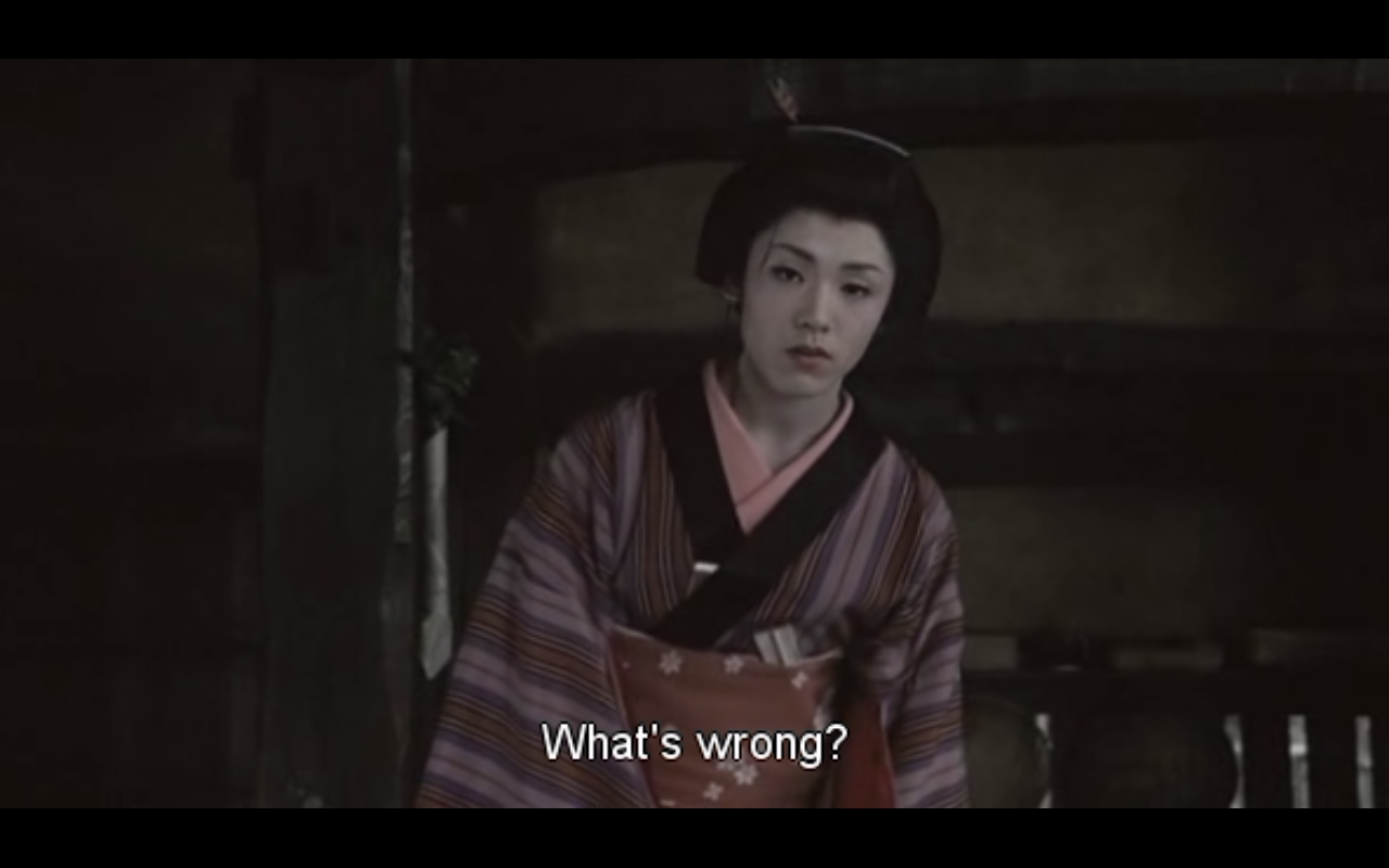 Un fel de Kill Bill medieval redus la scara micro sateasca (pleonastic stiu). Apropo de toposu rural, iata cum confratii niponi nu-s chiar atat de lunguiet-latitudinali in arhitectura. Sunt prezentate succesiv trei forme distincte de vindicatiune, fiecare cu armele si tacticile sale, taiosenia fiind falia lor comuna. Ele ajung, prin intermediul unor personaje-indice posesoare de skill-uri si farmece versatile, sa se intersecteze in micro universul asta, deh, spatiu’ restrans, satu’ adunat, nu pot fi decat prielnice intalnirilor in miez de noapte intru casapire si razbunare.