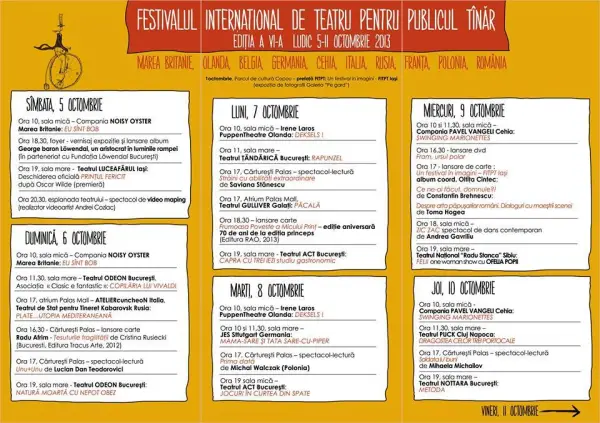 Singura manifestare teatrală de asemenea amploare internațională din regiune și una dintre puținele de gen din țară, Festivalul Internațional de Teatru pentru Publicul Tânăr (FITPT) a atras pe ediție cca 200 de artiști și specialiști din întreaga lume și promite și în 2013 zile și seri memorabile. Cei care doresc să urmărească artiștii prezenți în cea de-a VI-a ediție au posibilitatea de a alege din oferta pe care organizatorii au făcut-o deja publică. Și nu este una de neglijat.
