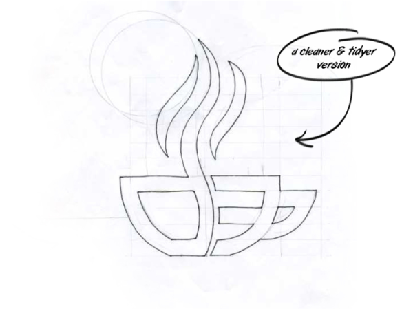 În timpul unui curs de baze de date Oracle, mintea mi-a luat-o la fugă și am început să mâzgălesc pe niște cursuri. Nu urmăream nimic special, doar încercam să meșteresc puțin la aranjarea acestui logo a cărui imagine nu mă părăsea. Aveam ulterior să aflu că fotografia acelei schițe, trimisă lui Mircea, urma să definească brand-ul „Ceașca de Cultură”.