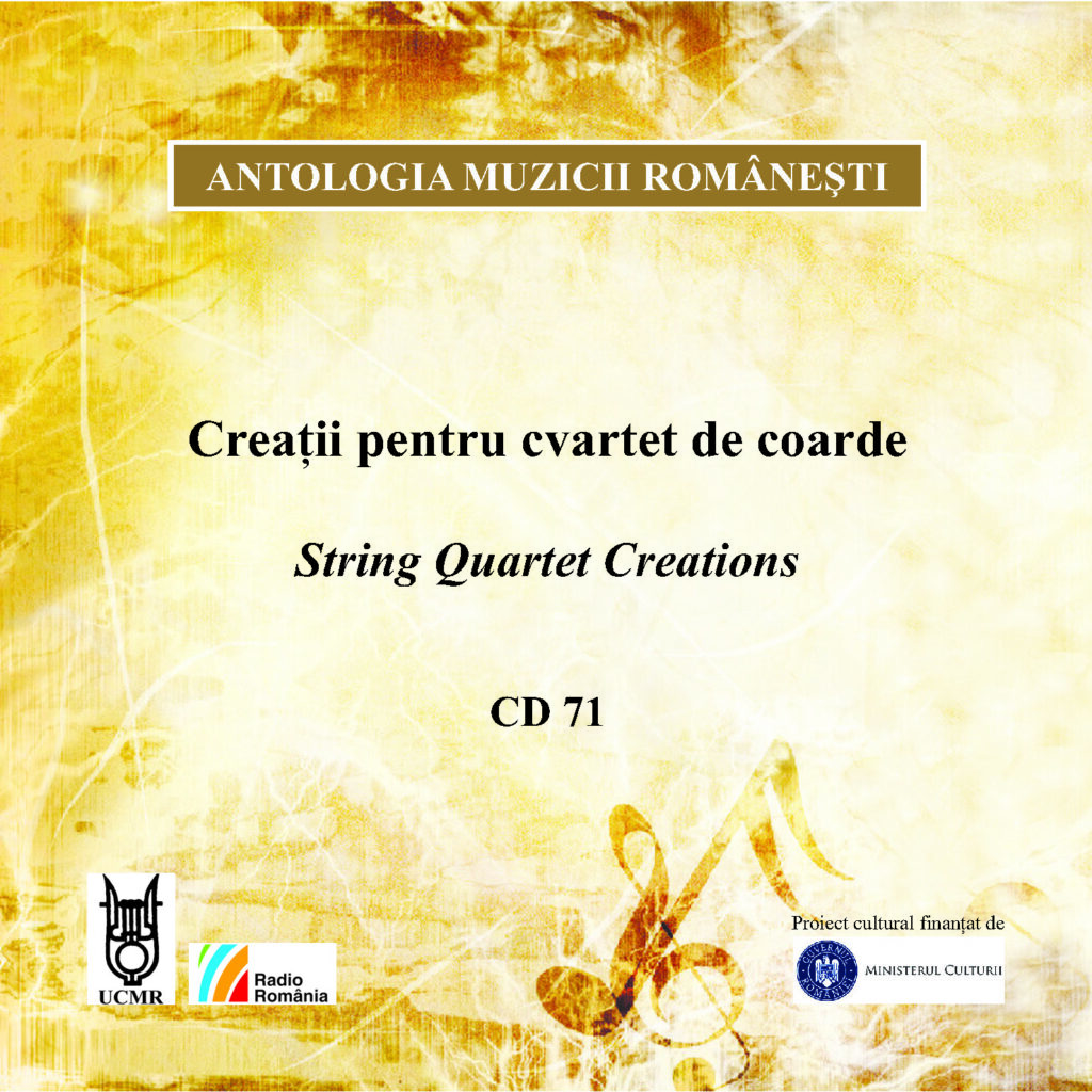 Interpretarea lucrărilor de pe CD stă sub semnul excelenței fiind realizată de către unul dintre cele mai spectaculoase ansambluri ale generației sale, Cvartetul Arcadia, alcătuit din Ana Török (vioară), Răsvan Dumitru (vioară), Traian Boală (violă) și Zsolt Török (violoncel), laureat al concursurilor Osaka International Chamber Music Competition (2014), Wigmore Hall London International String Quartet Competition (2012), Almere International Chamber Music Competition (2011) şi International Chamber Music Competition Hamburg (2009). ANTOLOGIA MUZICII ROMÂNEŞTI este un proiect de anvergură inițiat de Uniunea Compozitorilor și Muzicologilor din România care a ajuns la ediția cu numărul 21, având un caracter preponderent informativ prin cuprinderea unei arii largi şi variate de compozitori şi creaţii, în interpretări de referință și înregistrări de calitate, ce sunt puse la dispoziția radiourilor, instituţiilor artistice, de învăţământ şi mass-media, bibliotecilor şi fonotecilor din ţară şi străinătate în scop promoțional.