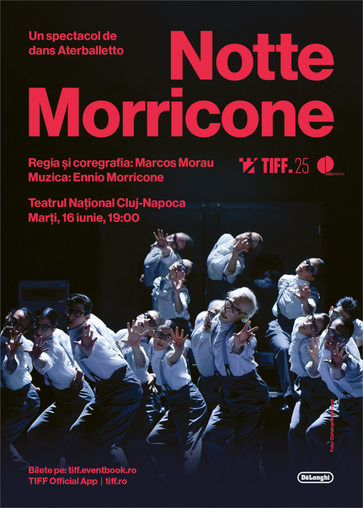 Cu ocazia celei de-a 25-a ediții, Festivalul Internațional de Film Transilvania (TIFF.25, 12 – 21 iunie 2026) a inclus în program un spectacol unic – Notte Morricone – care îmbină coregrafia, muzica și cinematografia într-un omagiu adus legendarului compozitor italian Ennio Morricone. Produs de Centro Coreografico Nazionale / Aterballetto din Italia și semnat de coregraful spaniol Marcos Morau, spectacolul Notte Moricone va avea loc marți, 16 iunie 2026, de la ora 19:00, la Teatrul Național Cluj-Napoca. Biletele au fost puse în vânzare online – https://tiff.eventbook.ro/