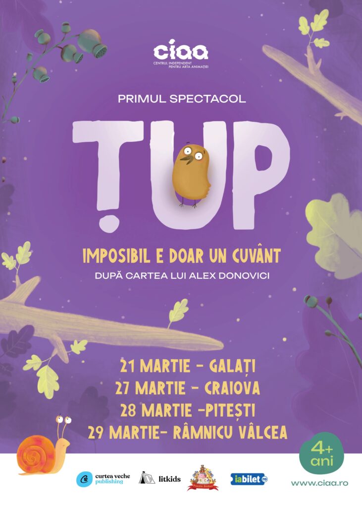 Între 21 și 29 martie, Centrul Independent pentru Arta Animației (CIAA) pornește într-un turneu național dedicat copiilor și familiilor, aducând pe scenele mai multor orașe din țară spectacolul de teatru de păpuși „Țup – Imposibil e doar un cuvânt”, inspirat de cartea scrisă de Alex Donovici și montat de Eduard Cîrlan. Turneul începe la Galați, unde publicul este invitat pe 21 martie, de la ora 16:00, la Teatrul din Buzunar.