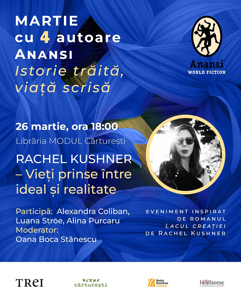 Editura Trei, prin imprintul Anansi. World Fiction, îi invită pe iubitorii de literatură din capitală, joi, 26 martie, începând cu ora 18:00, la cel de-al patrulea eveniment din seria „Istorie trăită, viață scrisă”, dedicată literaturii uneia dintre figurile definitorii ale „marii literaturi americane”: Rachel Kushner.