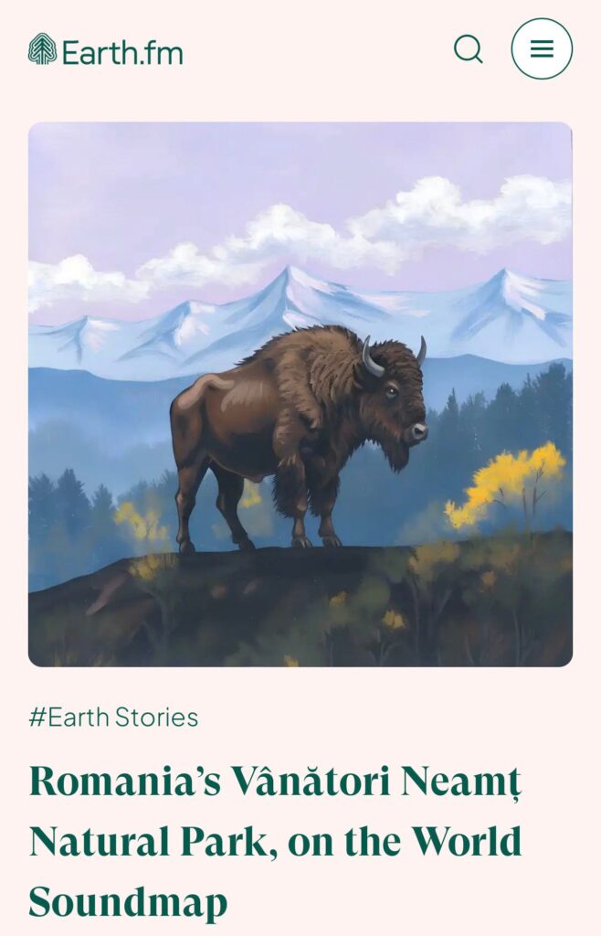 Astfel că, începând din 16 aprilie 2026, România intră în premieră pe harta globală a sunetelor cu pădurile seculare din Vânători Neamț. Intrarea României pe harta Earth FM este, în acest context, mai mult decât un playlist cu înregistrări sonore, pentru că devine o formă de prezență globală, accesibilă simultan pentru milioane de utilizatori din întreaga lume. Spre exemplu, 43,5% din publicul Earth FM este din Statele Unite, 8,2% din Marea Britanie, 4,4% din Canada. Este exact publicul care călătorește pentru natură și care, până acum, rar avea un punct de contact digital cu biodiversitatea românească.