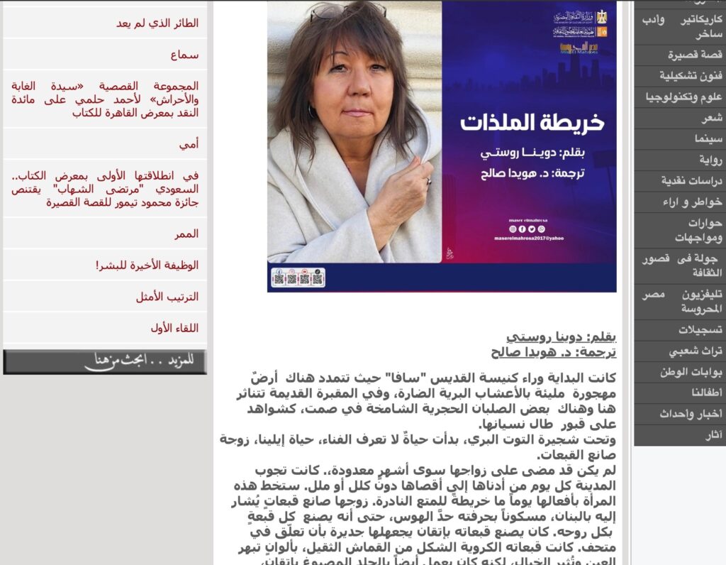 Misr Al-Mahrousa este o publicație a Ministerului Culturii egiptene, o revistă cu deschidere internațională, spre mediile literare și academice, iar traducerea contribuie la consolidarea prezenței literaturii române în circuitul internațional.