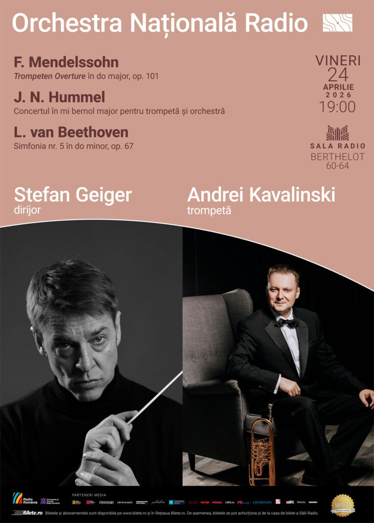 Evenimentul se va derula sub bagheta dirijorului german Stefan Geiger. În programul serii de la Sala Radio, veți mai asculta Mendelssohn: Trompeten Overture și Simfonia a 5-a de Beethoven. Cu celebrele sale patru note ce deschid lucrarea, devenite probabil cel mai cunoscut motiv din repertoriul simfonic, Simfonia a 5-a de Beethoven s-a impus ca una dintre cele mai recognoscibile creații din istoria muzicii și ca un simbol al luptei cu destinul. Pornind de la acest motiv scurt și memorabil, Beethoven construiește o întreagă arhitectură sonoră, de o forță dramatică excepțională.