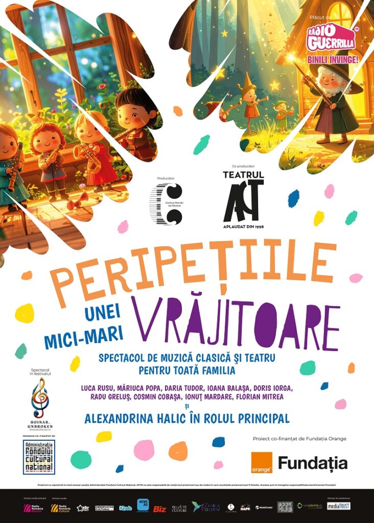 Aceeași forță a explorării se regăsește și în spectacolul dedicat celor mai tineri spectatori, Peripețiile unei mici-mari vrăjitoare (17 mai, ora 11:00). Legendara actriță Alexandrina Halic, a cărei prezență scenică a modelat generații de spectatori, devine ghidul unei aventuri în care muzica clasică este demistificată prin joacă. Alături de o nouă generație de muzicieni, aceasta transformă frica în curiozitate, demonstrând că arta poate fi un spațiu al bucuriei și al descoperirii la orice vârstă.