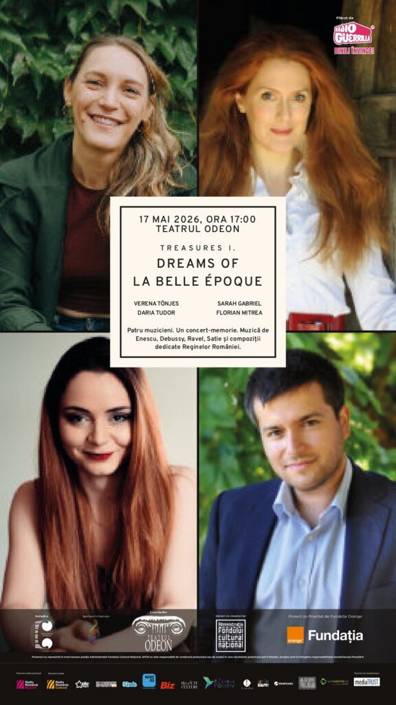 Unul dintre conceptele cele mai ambițioase ale ediției UNBROKEN este Treasures, un proiect itinerant care trasează un crâmpei de istorie culturală a Căii Victoriei, care de secole a fost un focar al ideilor, modei și al mișcărilor artistice ce au circulat de la est la vest. Parcursul debutează într-o atmosferă luminoasă cu Dreams of La Belle Époque, la Teatrul Odeon (ora 17:00). Această primă parte explorează trecutul regal și cultural al României la începutul secolului al XX-lea, prin muzică ce reflectă eleganța și curiozitatea intelectuală a epocii. Muzica „micului Paris”, fragmente de compozitori necunoscuți dedicate reginelor României ce astăzi se mai găsesc doar în colecții private sau muzeale, intră în dialog cu muzica lui Enescu și rafinamentul francez caracteristic epocii (Poulenc, Debussy, Ravel, Satie), iar fragmentele muzicale se împletesc cu proiecții din jurnalul Reginei Maria a României.