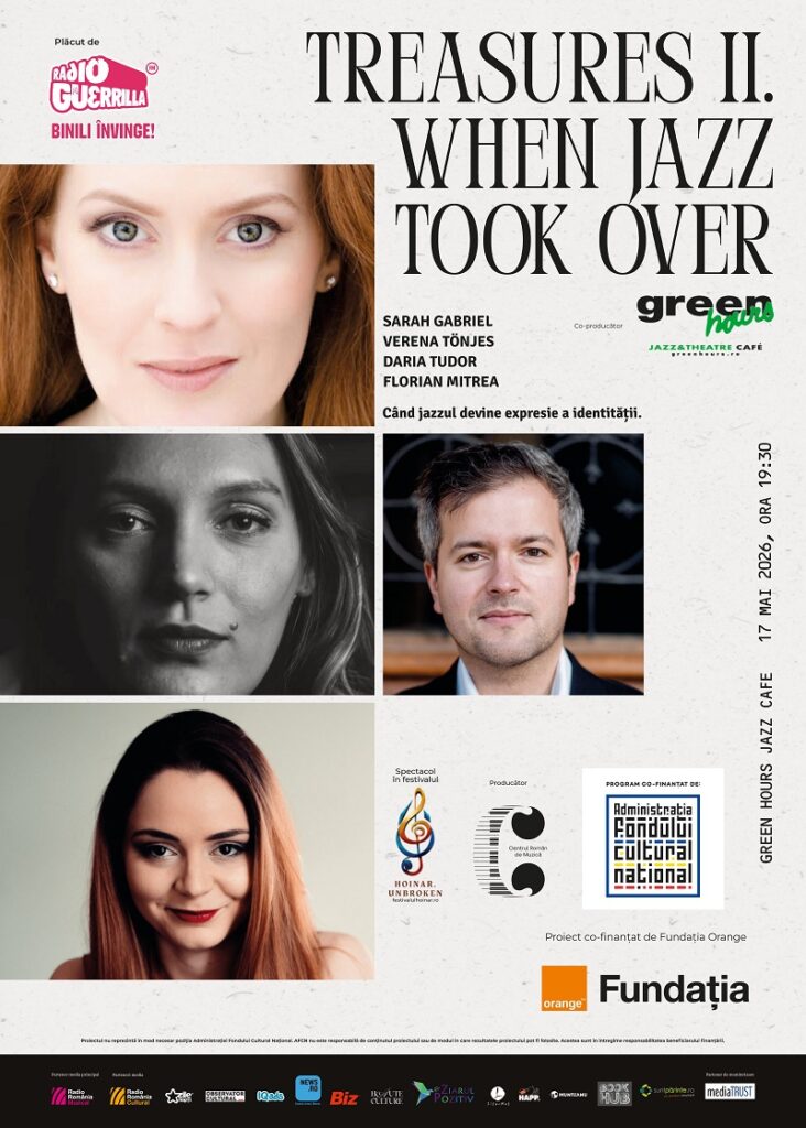 Călătoria continuă cu energia jazz-ului la Green Hours (ora 19:30), surprinzând momentul transformării – Treasures II: When Jazz Took Over. Așezat în centrul itinerariului, acest popas este despre ritmurile născute în America ce traversau Atlanticul și captivau publicul european în prima jumătate a secolului trecut. Cluburi de jazz, săli de dans și cafenele deschise până noaptea târziu erau elemente care redefineau viața de noapte urbană, iar sunetul muzicii făurite în Harlem și New Orleans găsea ecouri în toate orașele Europei.  Va fi un prilej de (re)întâlnire cu energia inconfundabilă a lui George Gershwin, rafinamentul lui Cole Porter și forța emoțională a Ninei Simone.