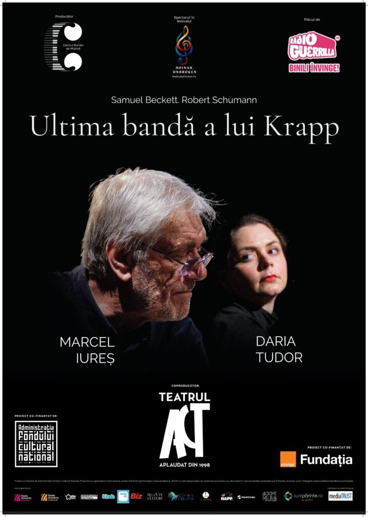 Programul găzduit de Teatrul ACT include producții de o profunzime aparte, centrate pe onestitate și vulnerabilitate. Acesta debutează cu o incursiune în psihologia curajului, o meditație asupra timpului și a memoriei. În Ultima bandă a lui Krapp (14 mai, ora 19:30), actorul Marcel Iureș aduce pe scenă universul lui Samuel Beckett, unde dialogul dintre prezent şi trecut este potențat de sensibilitatea muzicii lui Robert Schumann, în interpretarea la pian a Dariei Tudor. Rezultatul este o confruntare viscerală cu propriul trecut, un gest de onestitate care definește spiritul ediției UNBROKEN.